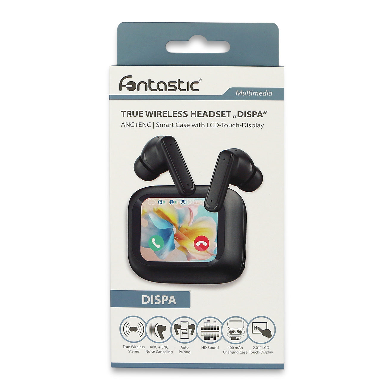 Die Fontastic DISPA True-Wireless-Kopfhörer vereinen modernes Design, neueste Bluetooth-Technologie und ein innovatives Smart Case mit LCD-Touch-Display. Mit ANC + ENC-Geräuschreduzierung, sieben Equalizer-Voreinstellungen, IPX4-Schutz und umfassender Touch-Steuerung liefern die DISPA ein erstklassiges Hörerlebnis – ob unterwegs, im Büro oder beim Training.